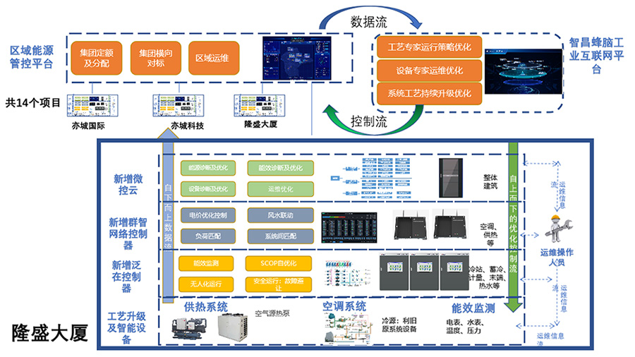 智昌集團搭建的智能化運維管理平臺采用四層架構,通過核心“三元智能控制器產品”,集成新一代通訊與信息技術,實現公共建筑能源數據采集與優化控制